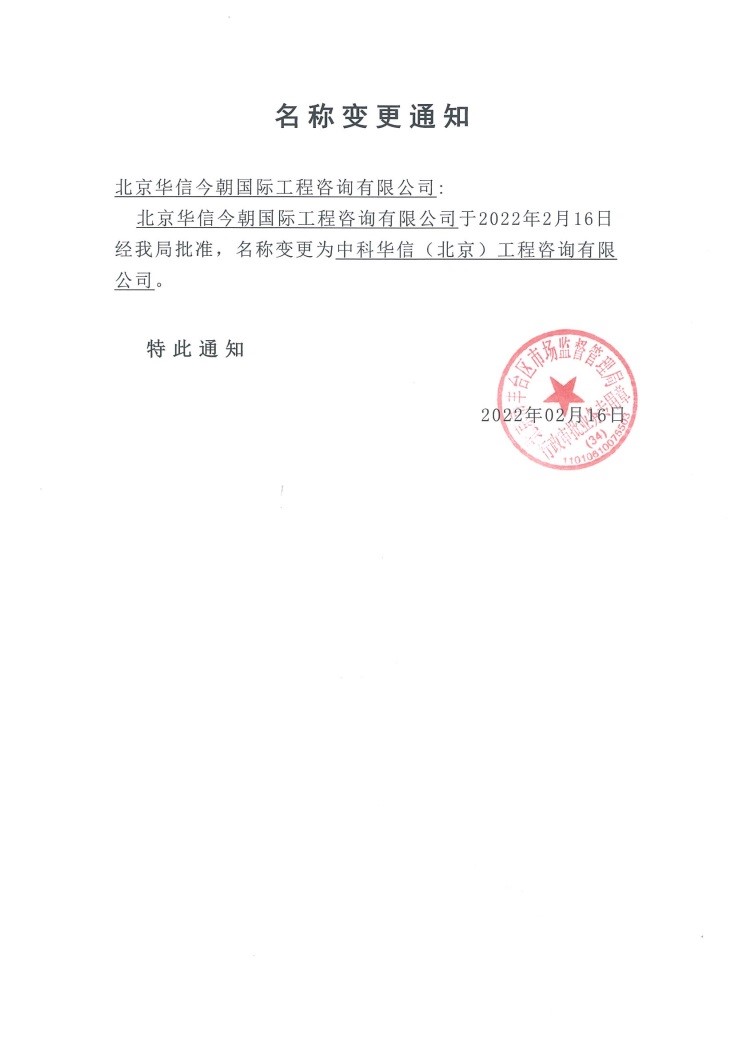 中科华信(北京)工程咨询有限公司具有建设部颁发的 “工程造价咨询甲级资质” , 证书编号: